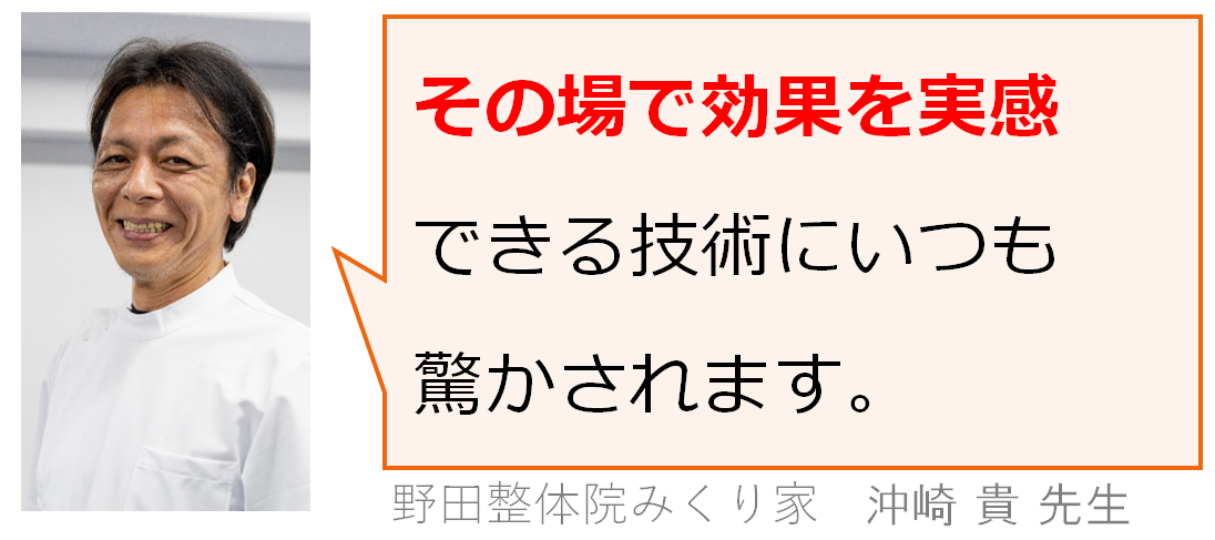力いっぱい施術するのではないので、痛いということは無く、気持ち良かったです。
