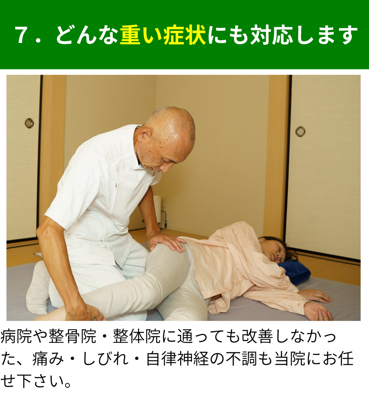 当院では、整骨院や整体院でよくあるその場しのぎの施術は基本的に行っておりません。